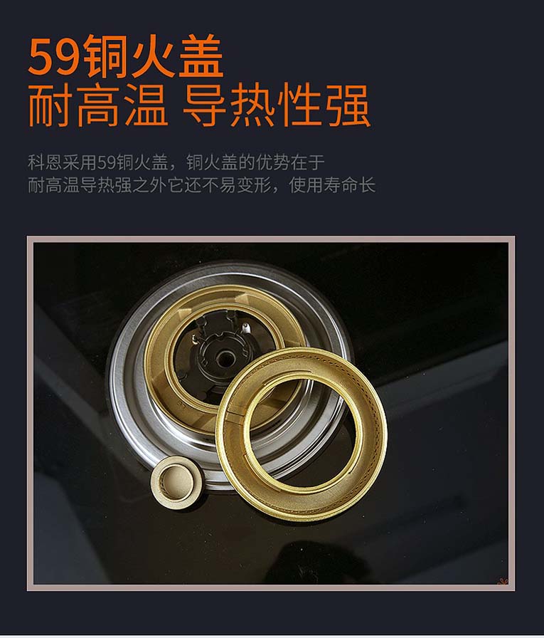除此之外,科恩智能蒸烤消一體集成灶采用新一代燃燒系統雙聚能環設計,四通道獨立引射,熱效率更高;59銅火蓋設計,耐高溫,導熱性更強,不易變形,使用壽命更長。LOW-E隔熱玻璃材質設計,有效防止烹飪過程中誤碰導致被燙傷等風險產生,外加熱化油一鍵自動清洗功能,真正做到免清洗,讓用戶使用更安心更省心!