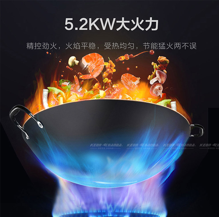 中式菜肴對火候的要求很高,爆炒能讓食材口感更佳,科恩KN610燃氣灶5.2KW大火力爆炒美味,精控勁火火焰平穩,節能猛火兩不誤,火力輸出與中餐烹飪完美匹配,滿足了中國家庭的爆炒需求。KN610燃氣灶采用全進風鋁合金爐頭,燃燒效率高,使烹飪效果格外突出,熱效率更是達到了66%,國家一級能效更省氣,高效燃燒更省錢!