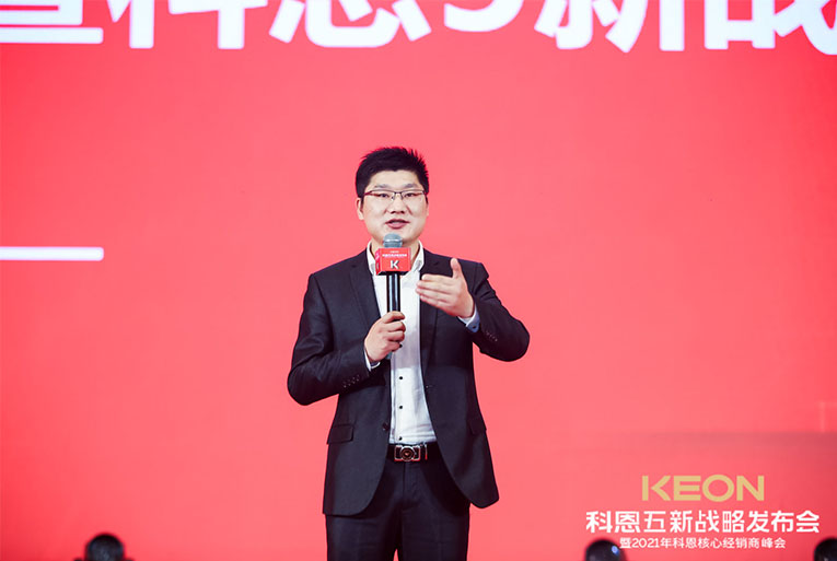 這一切成功的背后,除了有一支優秀的鐵血團隊,還有各地經銷商家人的支持陪伴,更重要的是有一位領航人不斷地探索。科恩電器董事長俞鋒上臺致辭,宣布峰會正式開始,“打造新科恩、重塑新科恩,再創科恩黃金十年”這一堅定目標和信念,伴隨洪亮的嗓音響徹全場。