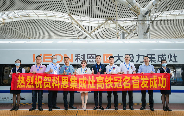 集成灶十大品牌、廚電行業十大品牌科恩集成灶2021年以來全力加速品牌推廣進程,此番大手筆投放高鐵廣告,讓“集成灶就選科恩大吸力”口號,借助高鐵速度、廣度以及深度,更精準地推向全國市場?!?strong>科恩號”高鐵品牌專列首發以G1418次為本次儀式活動專列,自長沙南始發至終點站寧波,全程1047公里。作為集成灶十大品牌,科恩重磅冠名高鐵品牌專列,通過中國高鐵完善的平臺搭建,實現渠道共享,成功開啟輻射全國的品牌戰略布局。