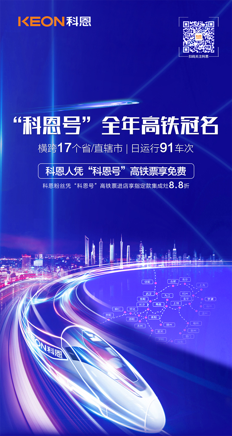 搶占品牌傳播高地,搭載中國(guó)高鐵速度,科恩速度永不止步!憑借強(qiáng)勁的產(chǎn)品競(jìng)爭(zhēng)力和傳播力,向更多消費(fèi)者展現(xiàn)“集成灶就選科恩大吸力”以及“樂(lè)享智慧烹飪”體驗(yàn),實(shí)現(xiàn)品牌騰飛!另外,乘坐“科恩號(hào)”將享受專(zhuān)享福利:①科恩代理商憑乘坐“科恩號(hào)”高鐵票或拍攝小視頻享受車(chē)費(fèi)免費(fèi)!注:素材需回傳至 浙江科恩電器有限公司 微信公眾號(hào)。具體操作如下:打開(kāi)微信→搜索 浙江科恩電器有限公司 微信公眾號(hào)并關(guān)注→點(diǎn)擊左下角 小鍵盤(pán) →再點(diǎn)擊右邊 +號(hào) →選擇照片點(diǎn)擊相冊(cè)視頻發(fā)送。并在聊天框中留下 XX專(zhuān)賣(mài)店+姓名+電話(huà)(例:紹興專(zhuān)賣(mài)店+小明+123456789)。核實(shí)無(wú)誤后將在三個(gè)工作日內(nèi)與您取得聯(lián)系,并發(fā)放福利;②消費(fèi)者乘坐“科恩號(hào)”,憑高鐵票或乘坐視頻進(jìn)科恩集成灶全國(guó)專(zhuān)賣(mài)店享受指定款集成灶8.8折優(yōu)惠!