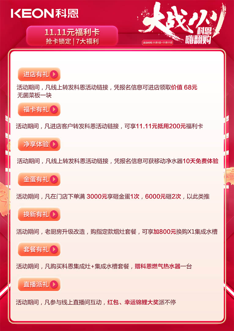 雙11逐漸臨近,買買買的心開始按捺不住了,滿減湊齊了嗎?紅包攢夠了嗎?準備好剁手了嗎?集成灶十大品牌、廚電行業十大品牌科恩集成灶總部已經準備好了!驚喜超低價,你真的不來看看嗎?