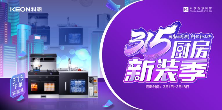 守品質(zhì),講誠信,集成灶十大品牌、廚電行業(yè)十大品牌科恩集成灶315廚房新裝季,鉅惠全國送上滿滿的誠意與服務(wù),3月1日-3月18日,來科恩就對了!