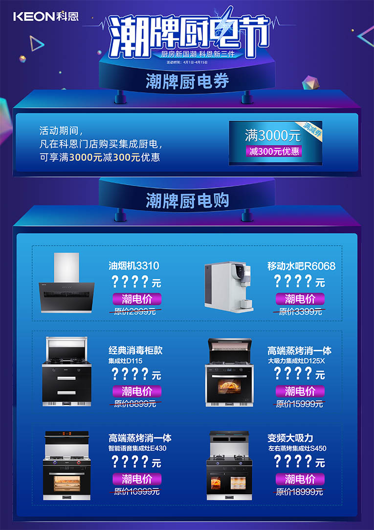除此之外,更有科恩全國(guó)六大戰(zhàn)區(qū)同時(shí)發(fā)力,只為給全國(guó)用戶帶來(lái)瘋狂特惠?。?月1日——4月15日,進(jìn)科恩門(mén)店,潮牌廚電節(jié),更多驚喜等你揭秘~