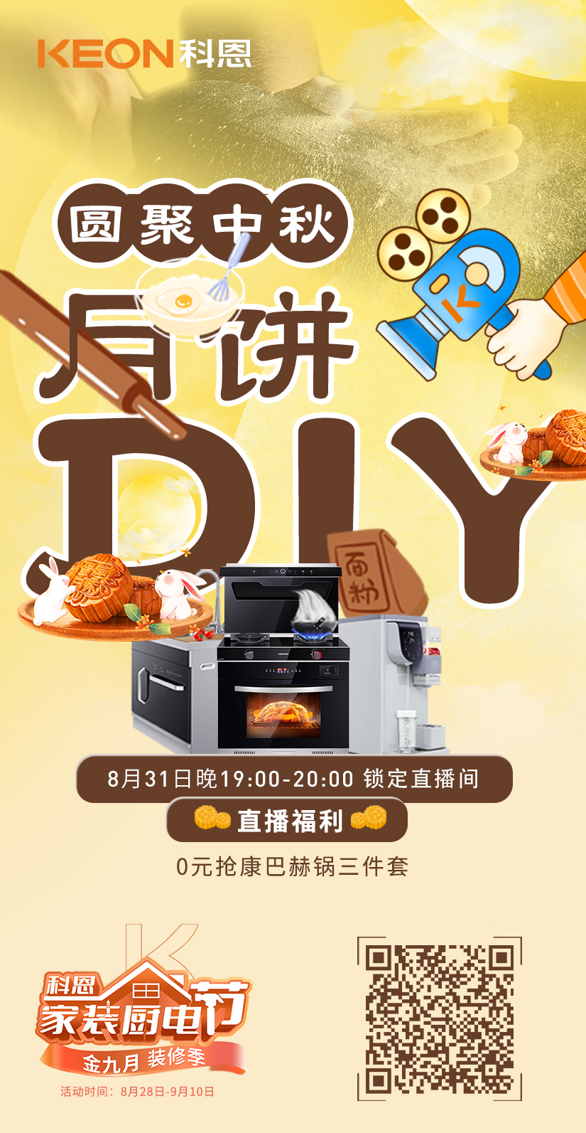 講真,吃久了外面買(mǎi)的月餅,總有那么一刻想要自己做來(lái)試試,而看到種種月餅DIY教程,呃……似乎難度……有點(diǎn)大!!!!于是!科恩集成灶就貼心的在科恩家裝廚電節(jié)活動(dòng)期間安排了【圓聚中秋,月餅DIY】為主題的直播活動(dòng)!手把手教你用科恩集成灶做高顏值的中秋月餅,而且據(jù)說(shuō)直播現(xiàn)場(chǎng)還有0元搶康巴赫鍋三件套的壕氣福利!