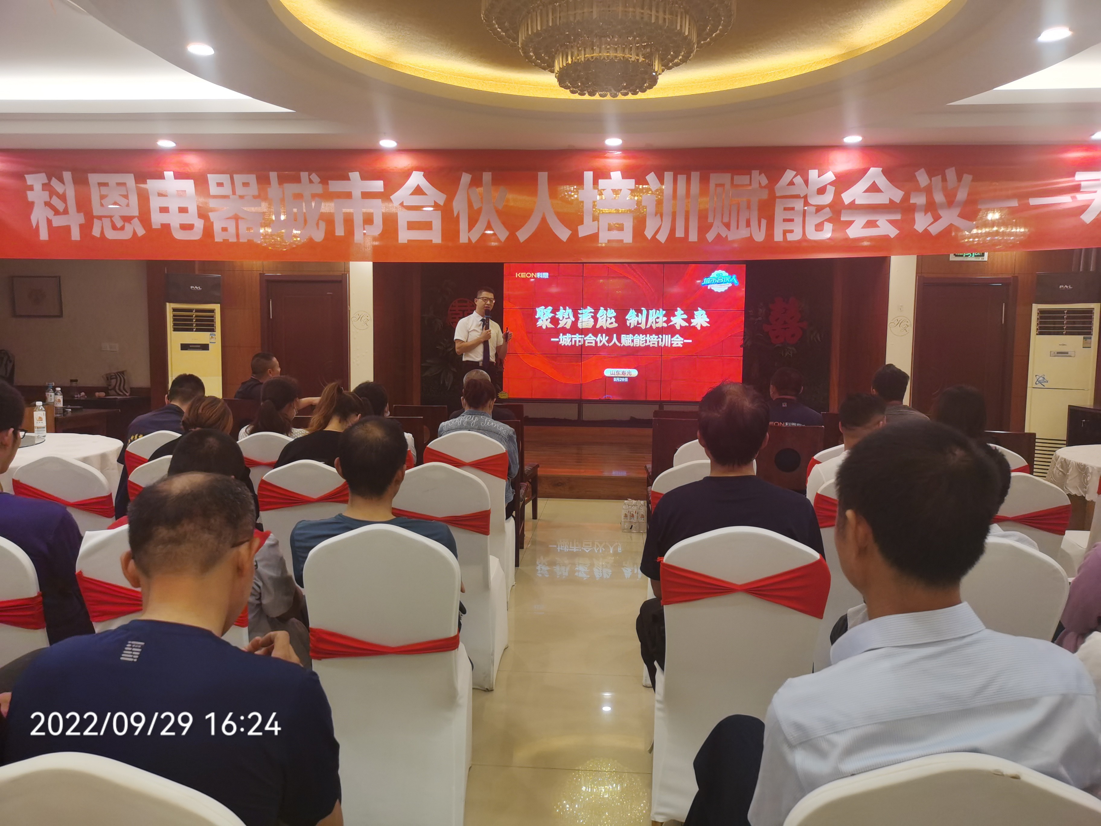 9月29日,科恩電器在山東壽光舉辦的“聚勢(shì)蓄能,致勝未來”城市合伙人培訓(xùn)賦能會(huì)議取得圓滿成功!來自山東各地的百余名豪杰好漢齊集壽光,共同參與此次城市合伙人培訓(xùn)賦能會(huì)議,山東省區(qū)域經(jīng)理王鵬程致歡迎詞!