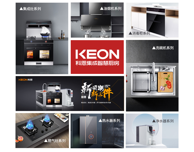 浙江科恩電器有限公司是國家高新技術企業、專利示范企業、集成灶十大品牌、CNAS認可實驗室、高效凈化環保之星、行業國標起草單位、集成灶團體標準起草單位科恩集成智慧廚房是一家專業生產高檔吸油煙機、燃氣灶、消毒柜、集成環保灶、移動凈水器等一體綜合性廚衛電器企業。