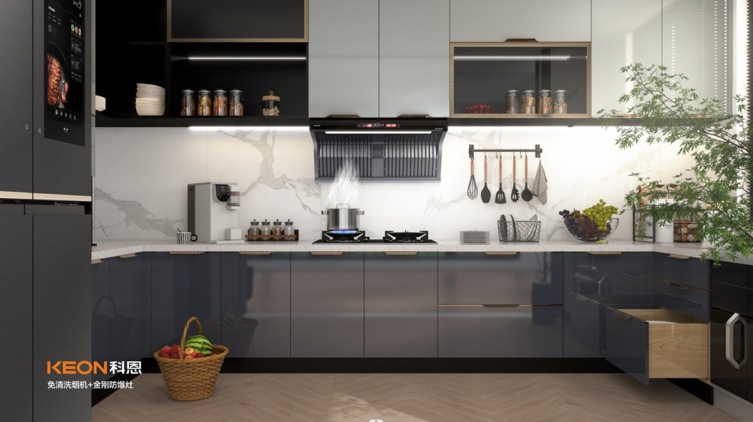 免清洗 更省心:現(xiàn)代人廚房生活討厭TOP榜單第一名:煙機(jī)清洗!為解決這個(gè)難題,科恩研發(fā)了免清洗煙機(jī),雙效疊排天網(wǎng),將油煙層層阻攔,油脂分離高達(dá)96%!煙機(jī)免清洗,廚房更省心!