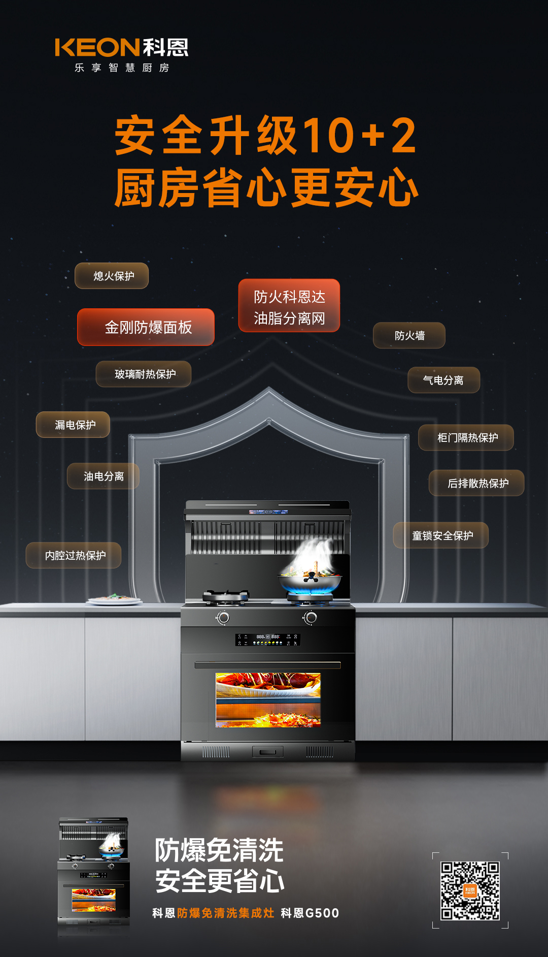 怎么樣的集成灶才能更完美匹配用戶的需求。2023年,科恩研發(fā)了G系列防爆免清洗集成灶,6K省心超體驗,完美適配消費者需求!