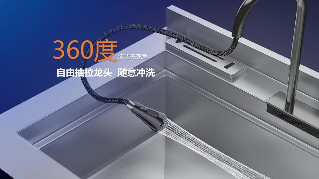 科恩X6L貼心設置抽拉式水龍頭,可實現360度無死角清洗。