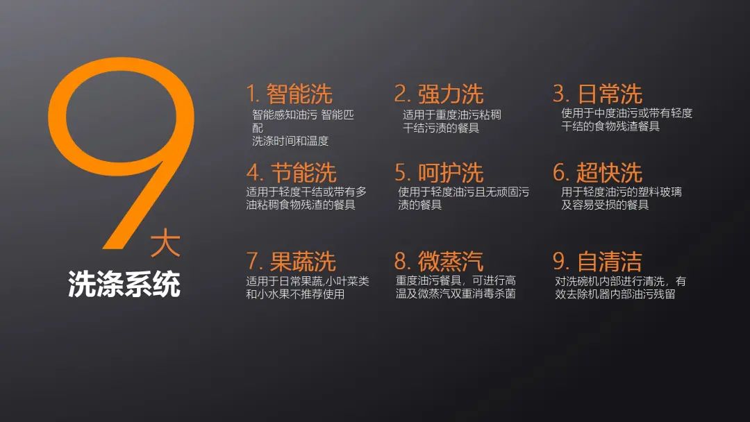 9大洗滌系統,可滿足用戶不同洗滌需求。