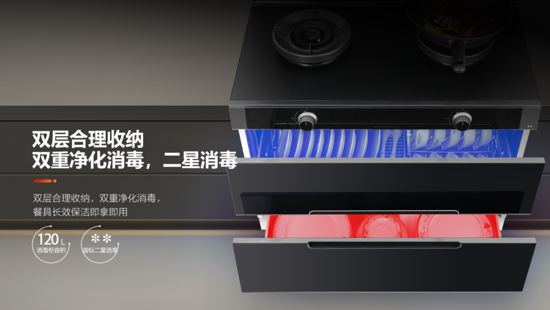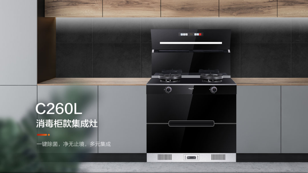 不得不說,這個時候一個家用消毒柜就十分有必要!但廚房空間有限,廚房電器頗多,著實沒有空間容納這么大的電器了。如何解決這個難題??贫?/span>C260L消毒柜款集成灶,一臺頂多臺,且國標二星消毒,能消殺更多細菌。