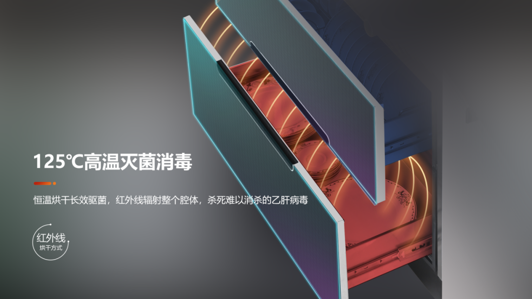 科恩C260L配有120L大容量消毒柜,采用臭氧與紫外線雙重消毒,125℃雙管高溫消毒,360°循環發熱殺菌更徹底,高溫蒸發腔內水分,防止細菌滋生。可持續15分鐘,125℃高溫滅菌消毒,紅外線輻射整個腔體,殺死難以消殺的乙肝病毒。真正母嬰級消毒柜,讓媽媽更放心。