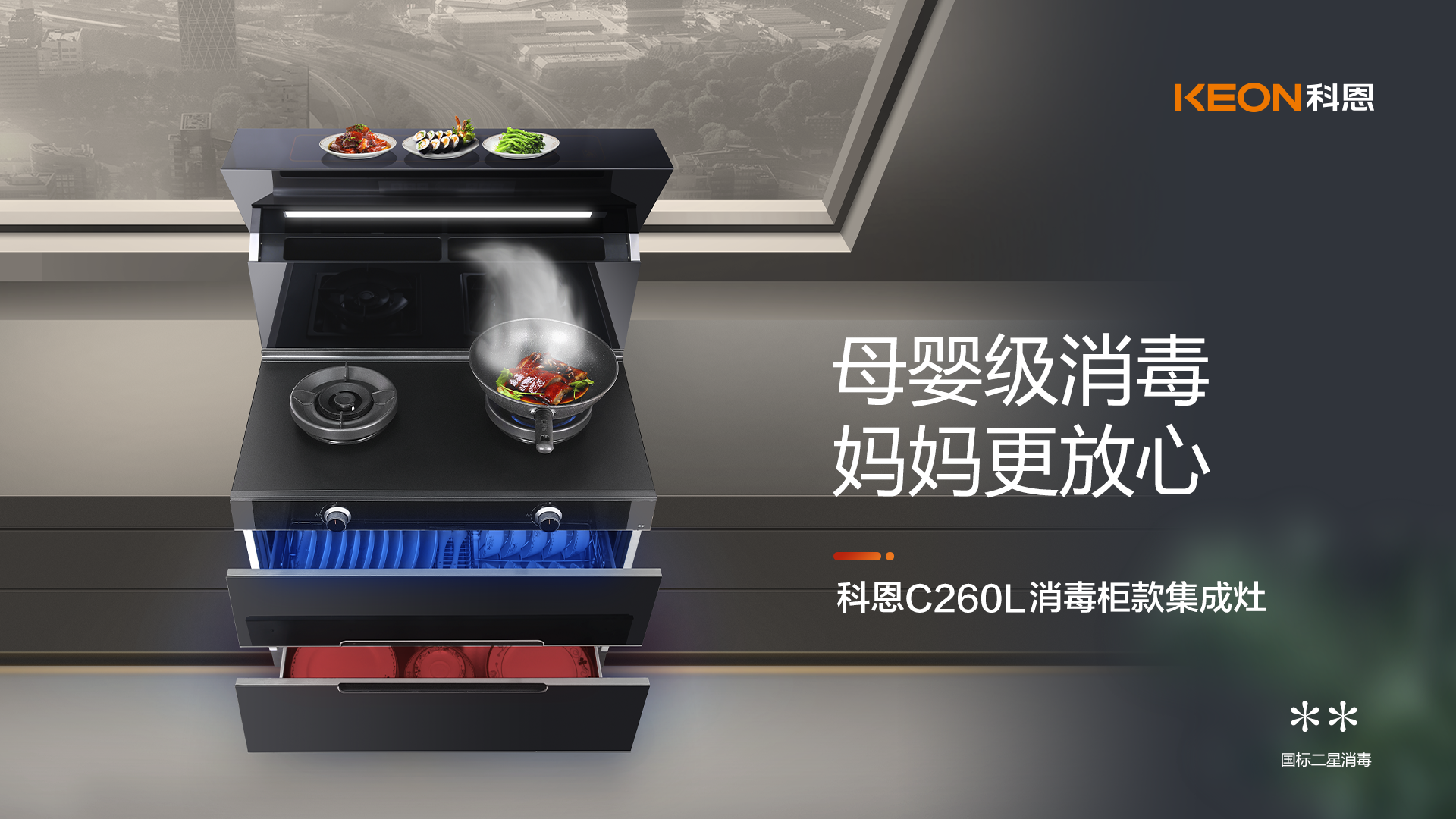 但市面上這么多的消毒柜款集成灶,怎么挑才能挑到最為合適的呢?科恩C260L傾城上市,國標二星消毒柜,更專業、更安全!