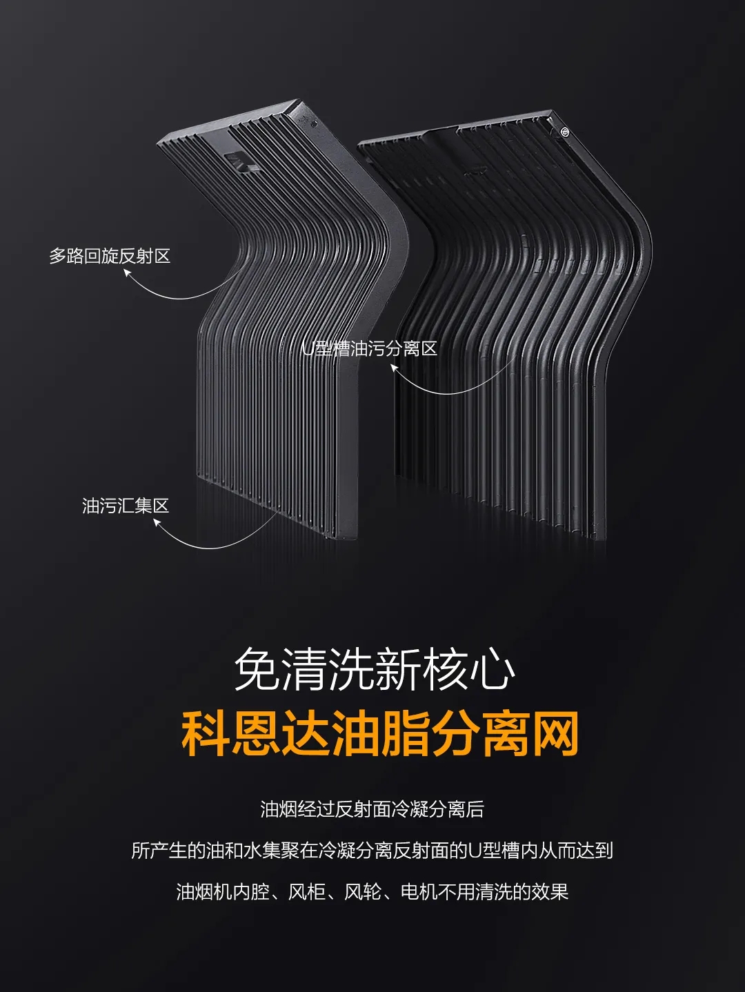 科恩達油脂分離網(wǎng)采用易潔太空壓鑄鋁材,相較于其他材質(zhì),更耐高溫、更易潔。