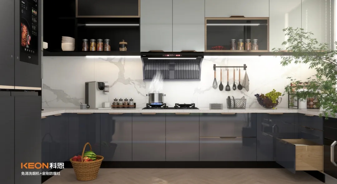 科恩6530免清洗煙機搭配KN700金剛防爆灶,開放式廚房zui佳搭檔。