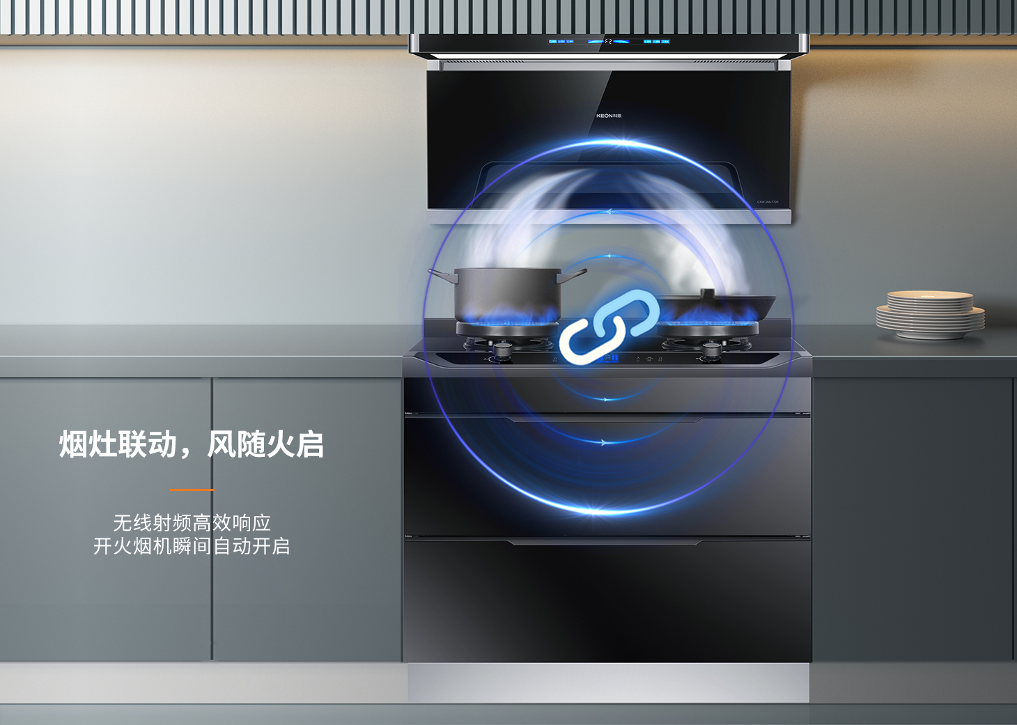 煙灶聯(lián)動(dòng),凈煙無憂。免除手忙腳亂操控,科恩集成烹飪中心,煙灶智控互聯(lián),開火即排煙。5.2KW藍(lán)焰猛火系統(tǒng),實(shí)現(xiàn)快速升溫,煎炒炸烙樣樣拿手,廚房小白也能變身中華小當(dāng)家。