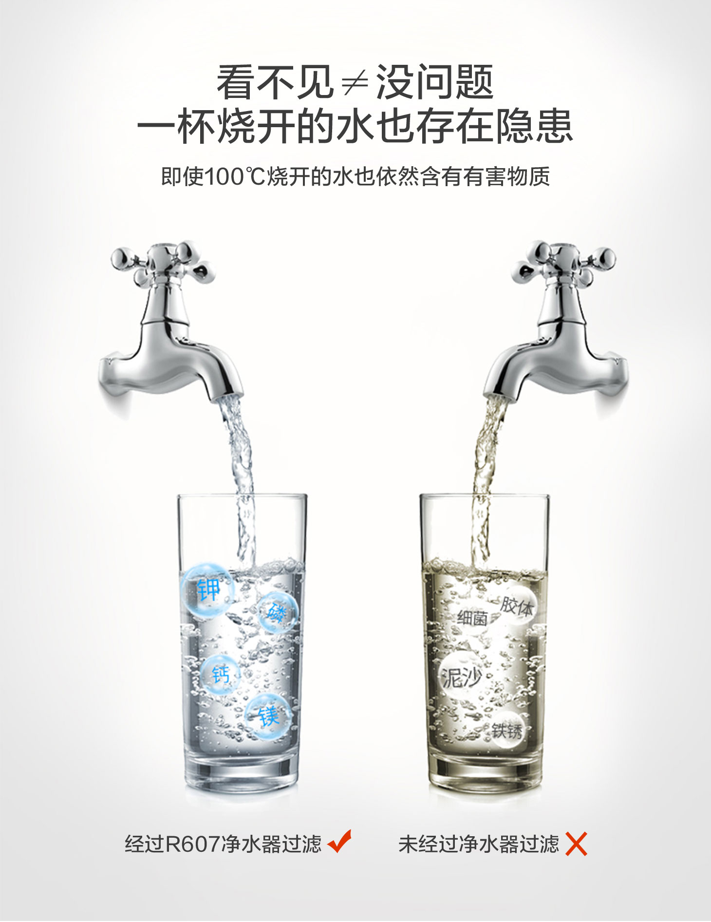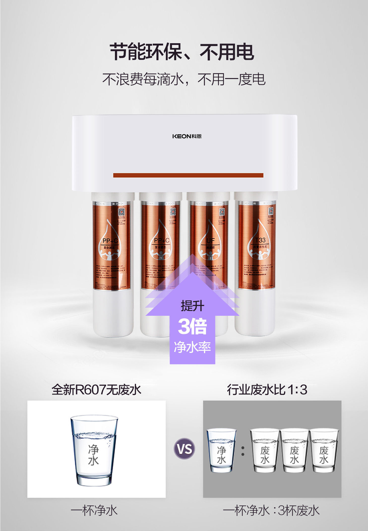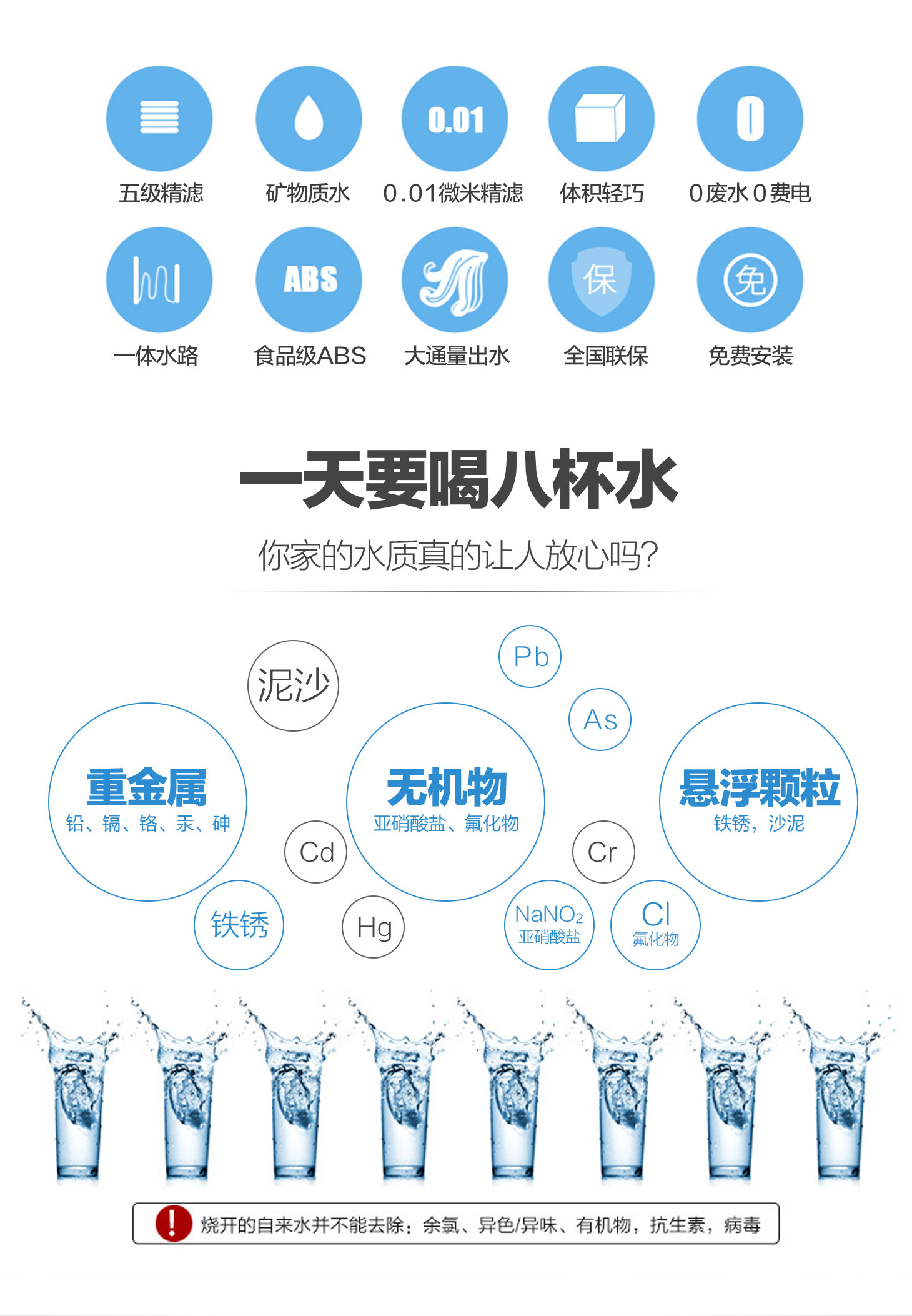 - 四重五級(jí)過(guò)濾,0.01微米超濾膜去除細(xì)菌和病毒。