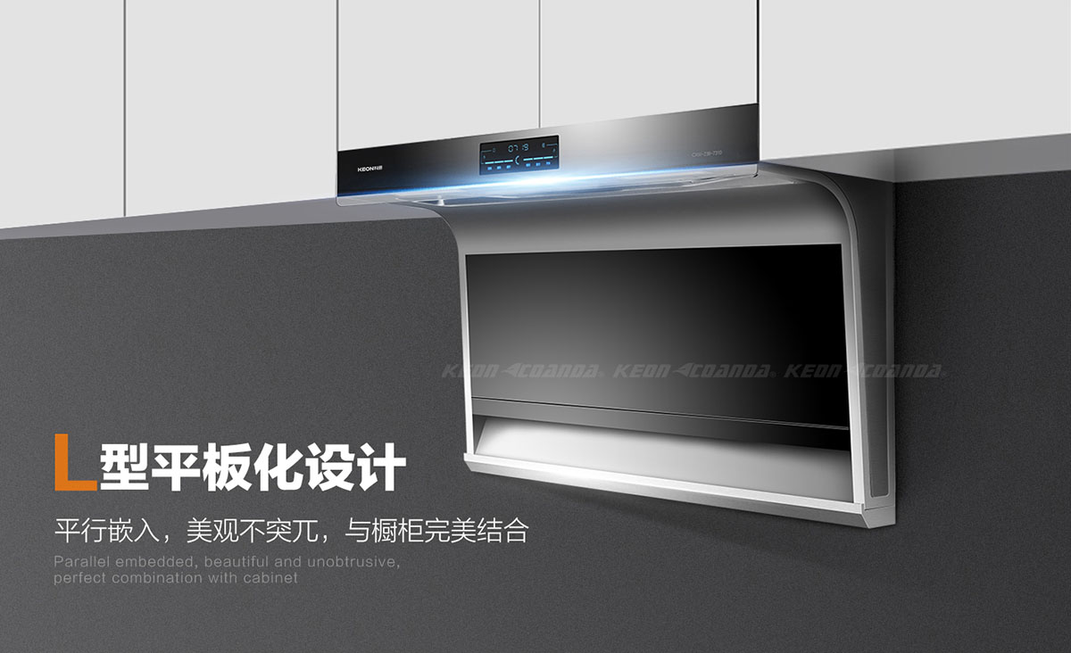 - 特創L型平板化隱形設計,平行嵌入,與櫥柜結合,美觀不突兀。