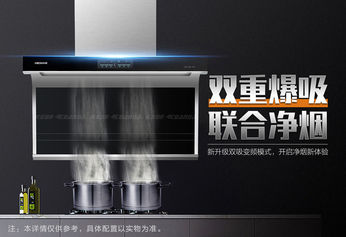 - 頂側兩吸,多方位爆吸油煙,四面八方不跑煙。