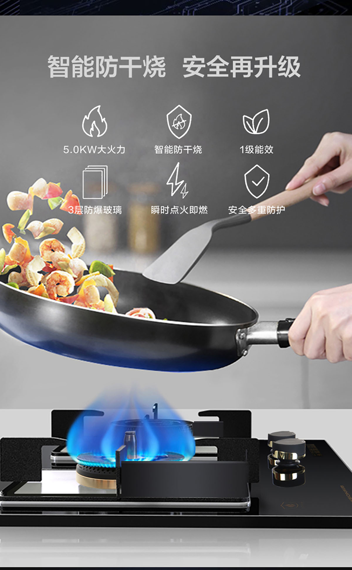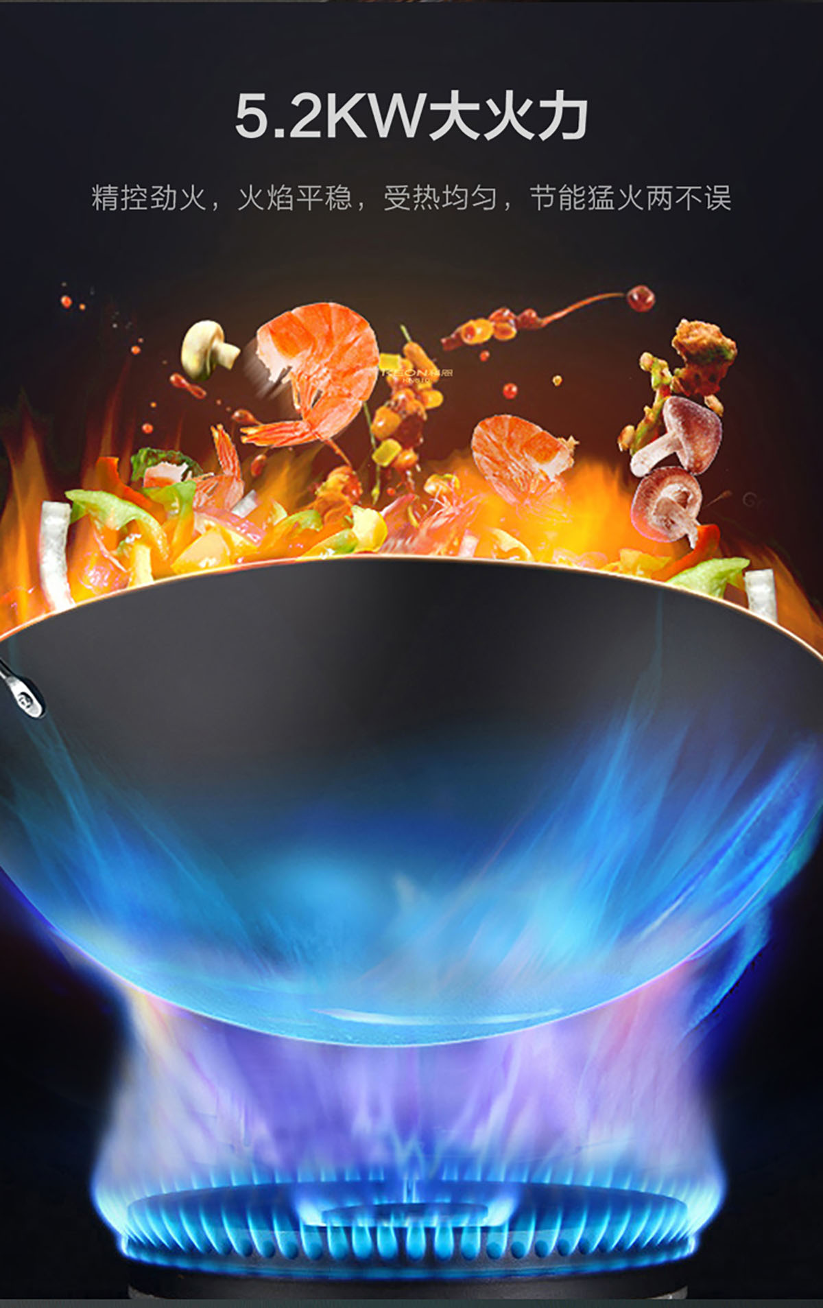• 5.2KW大火力,精控勁火,受熱均勻,節能猛火兩不誤