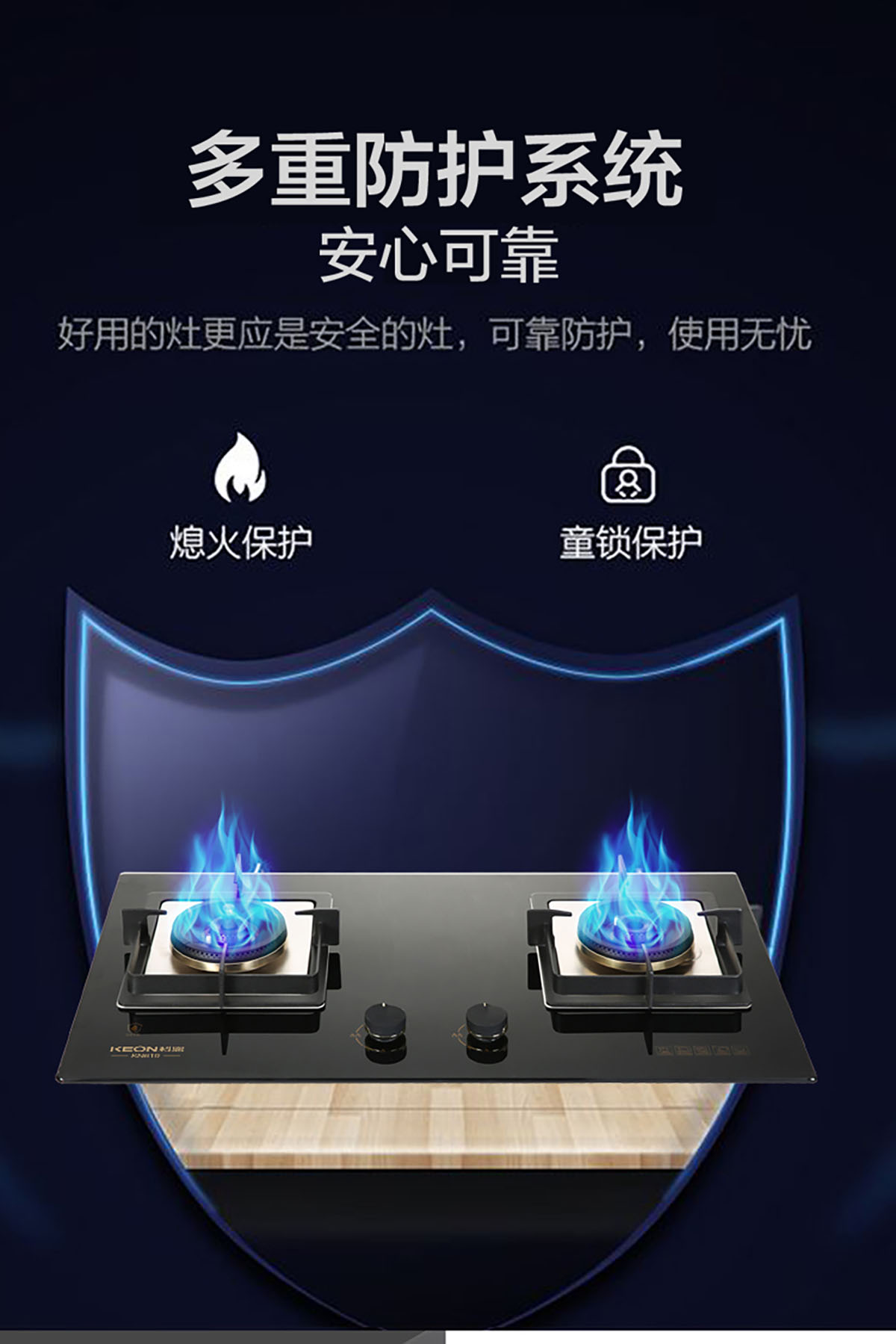 • 自帶童鎖按壓式點火旋鈕裝置,有效避免兒童意外開啟