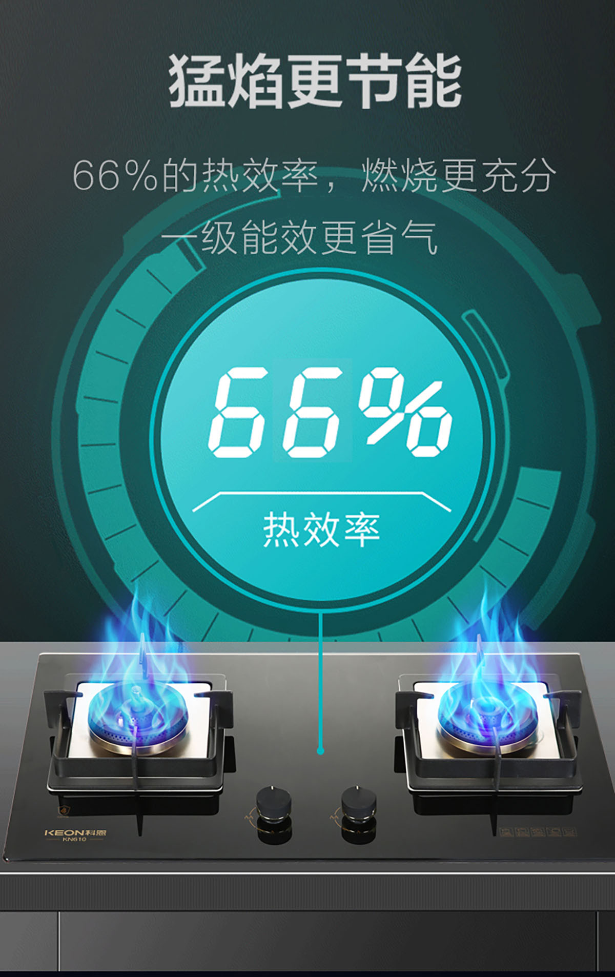 • 猛焰更節能,66%的熱效率,燃燒更充分,一級能效更省氣