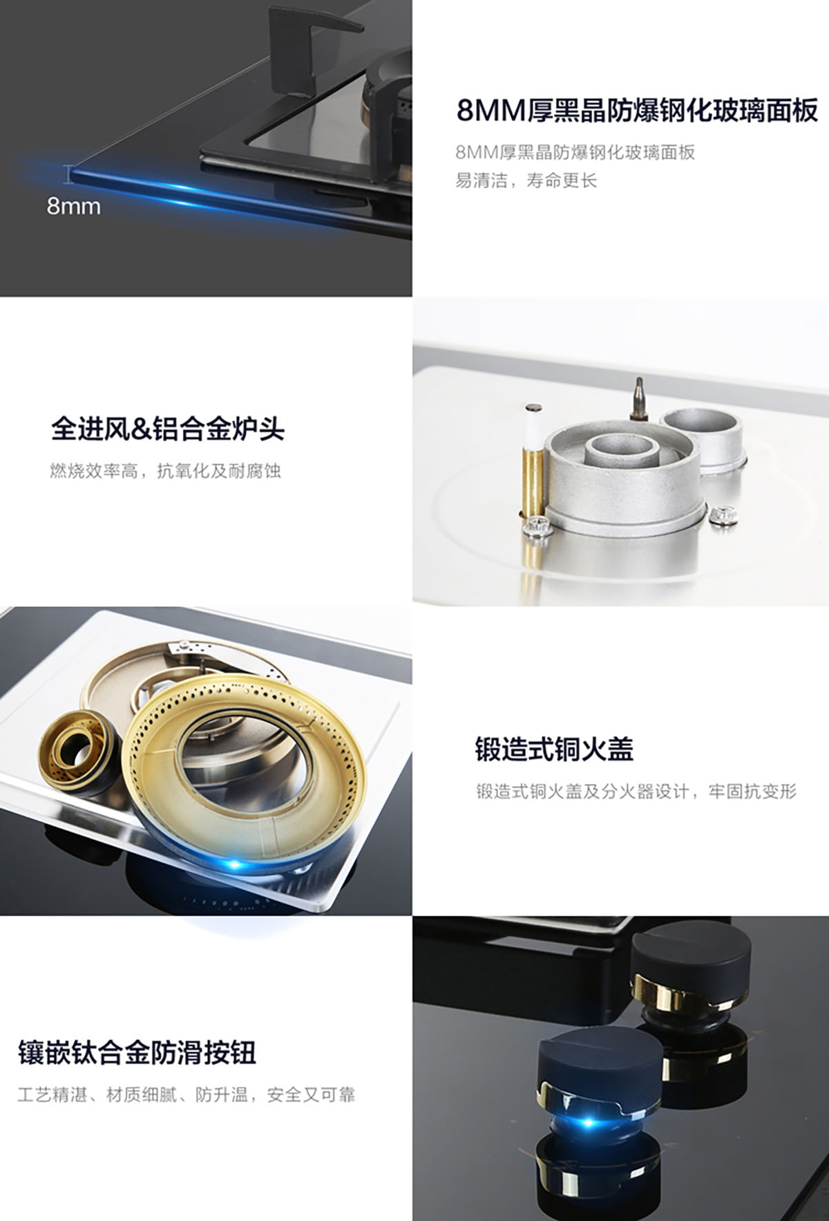 • 8MM厚黑晶防爆鋼化玻璃面板,易清潔,壽命更長