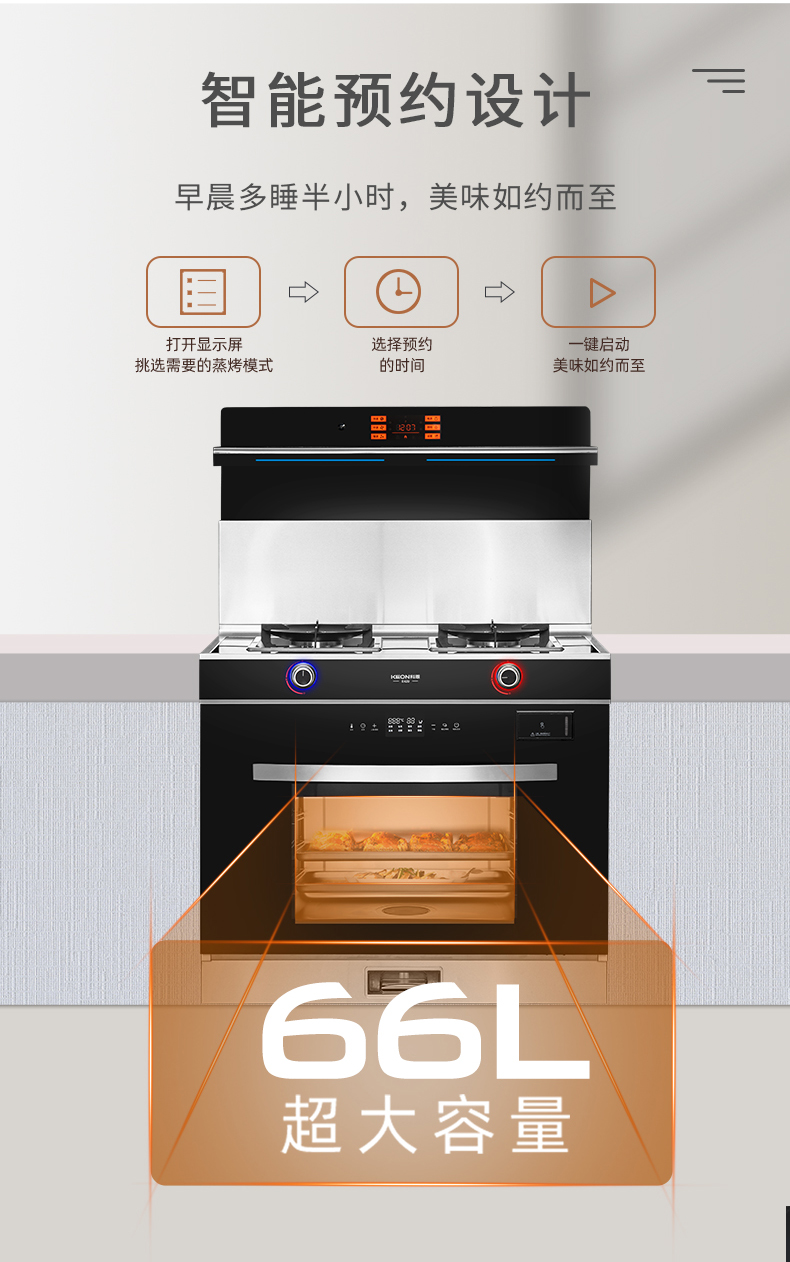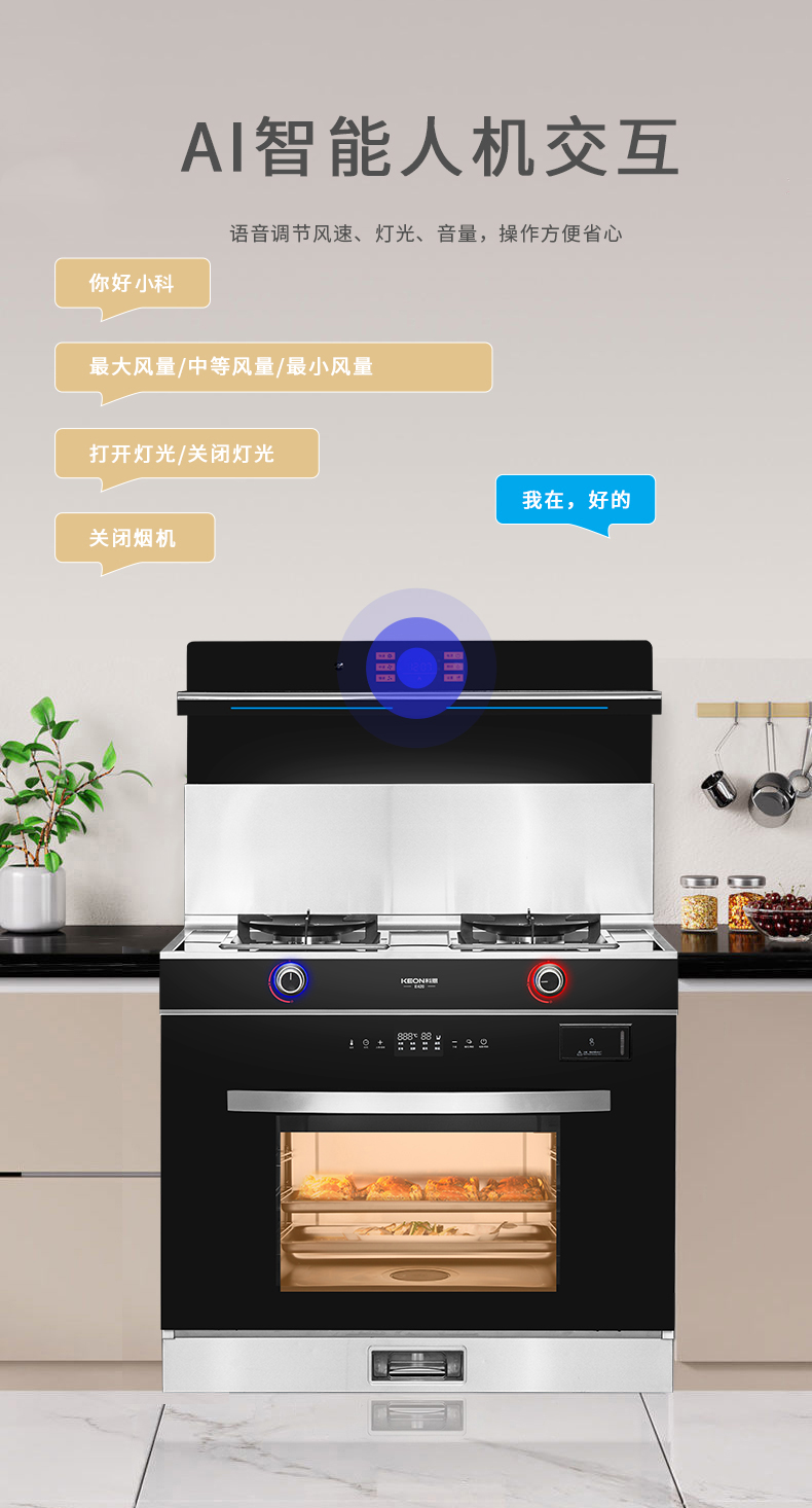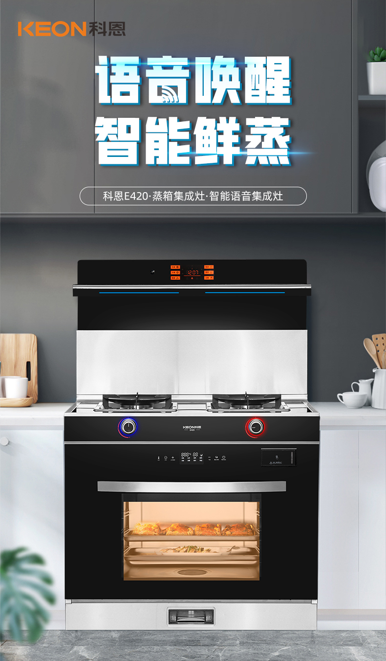 • 語音喚醒,智能鮮蒸,科恩E420智能語音集成灶