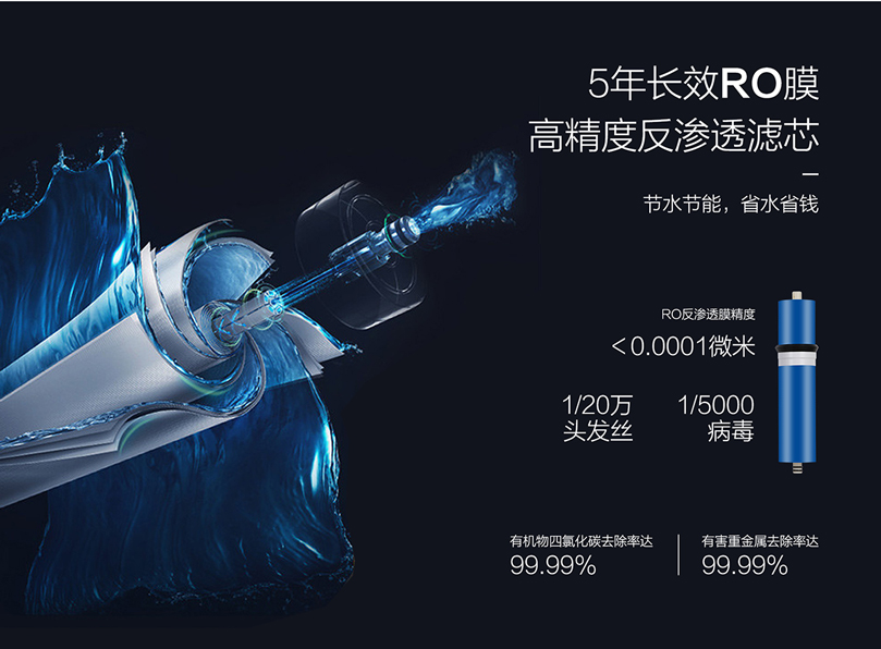 - 5年長(zhǎng)效RO膜,高精度反滲透濾芯