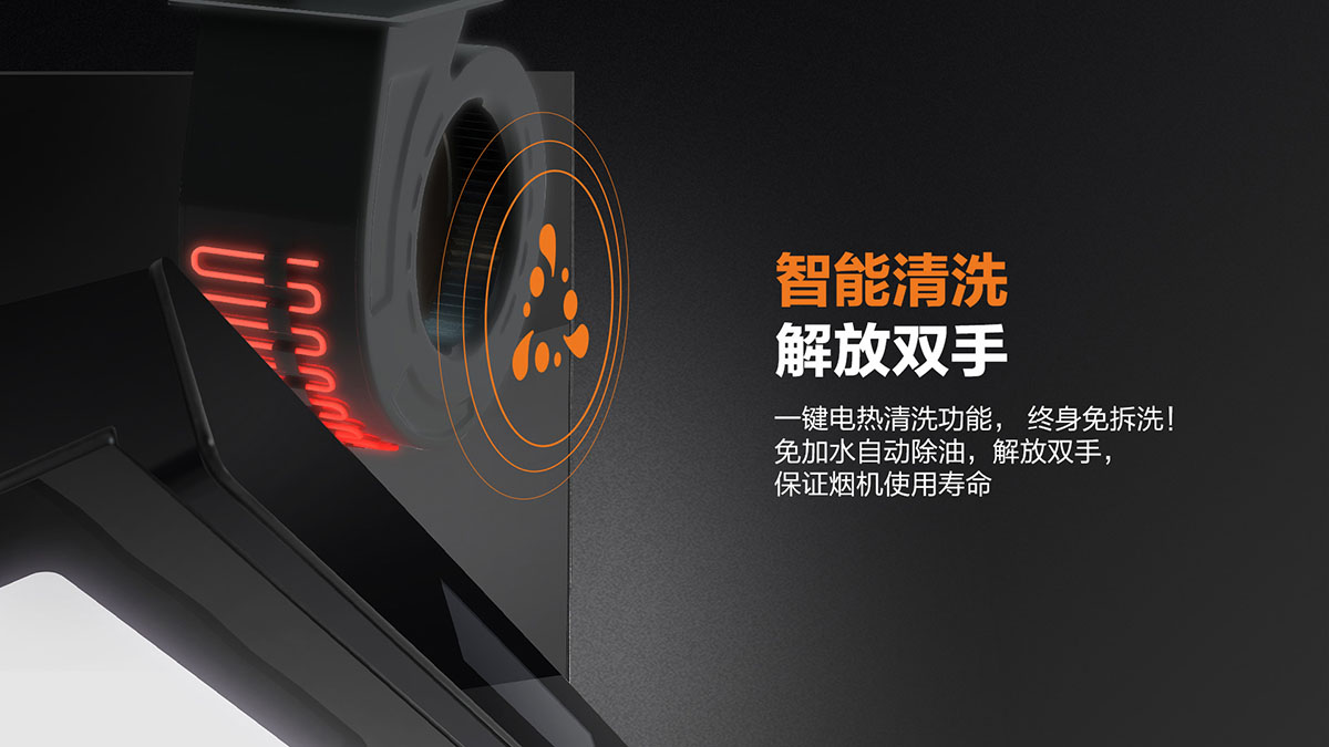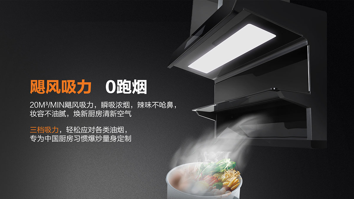 - 獨特黃金吸煙角,二次冷凝板內傾設計,油煙不過臉