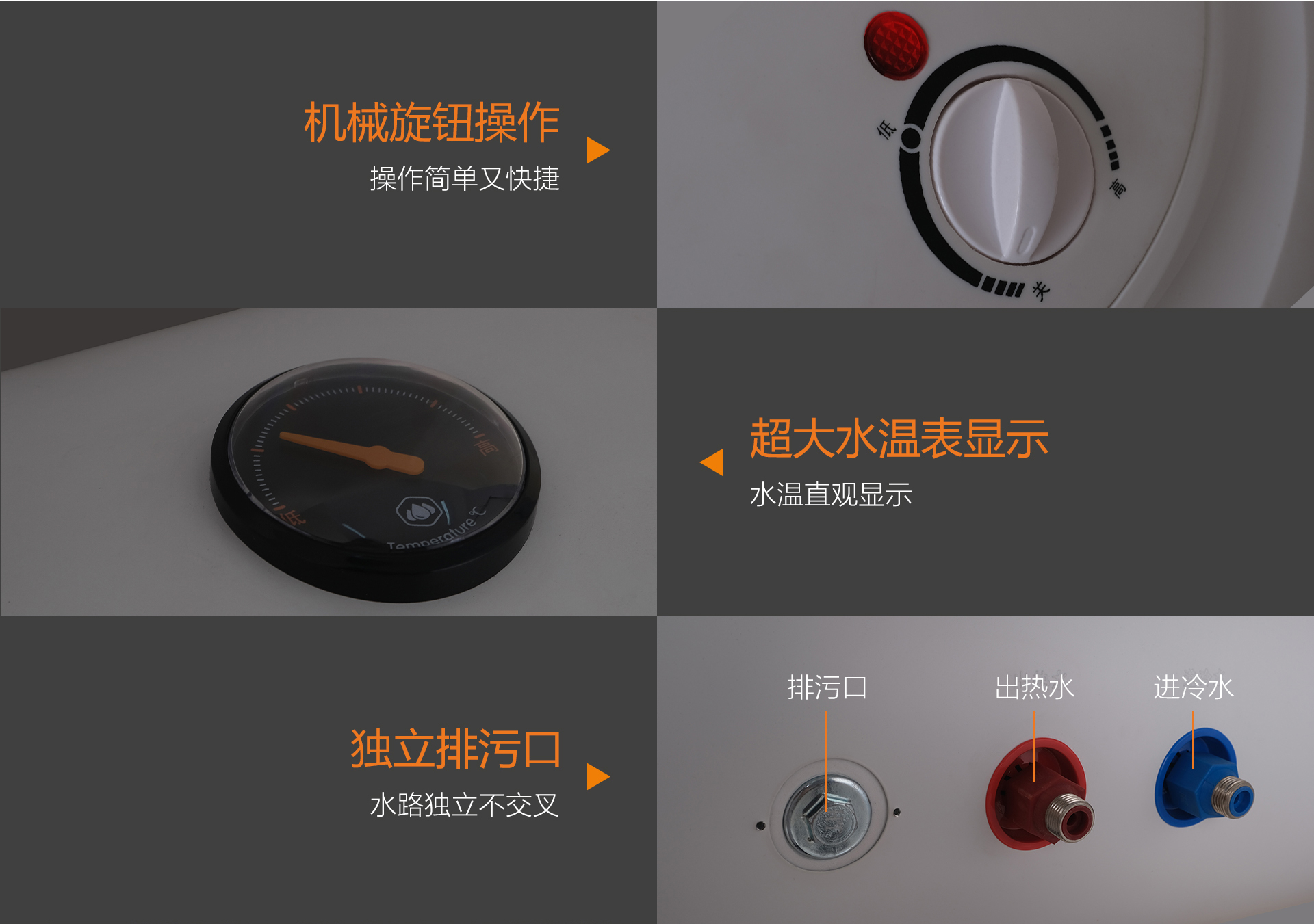 • 可視外置水溫表一目了然,設(shè)計簡潔直觀