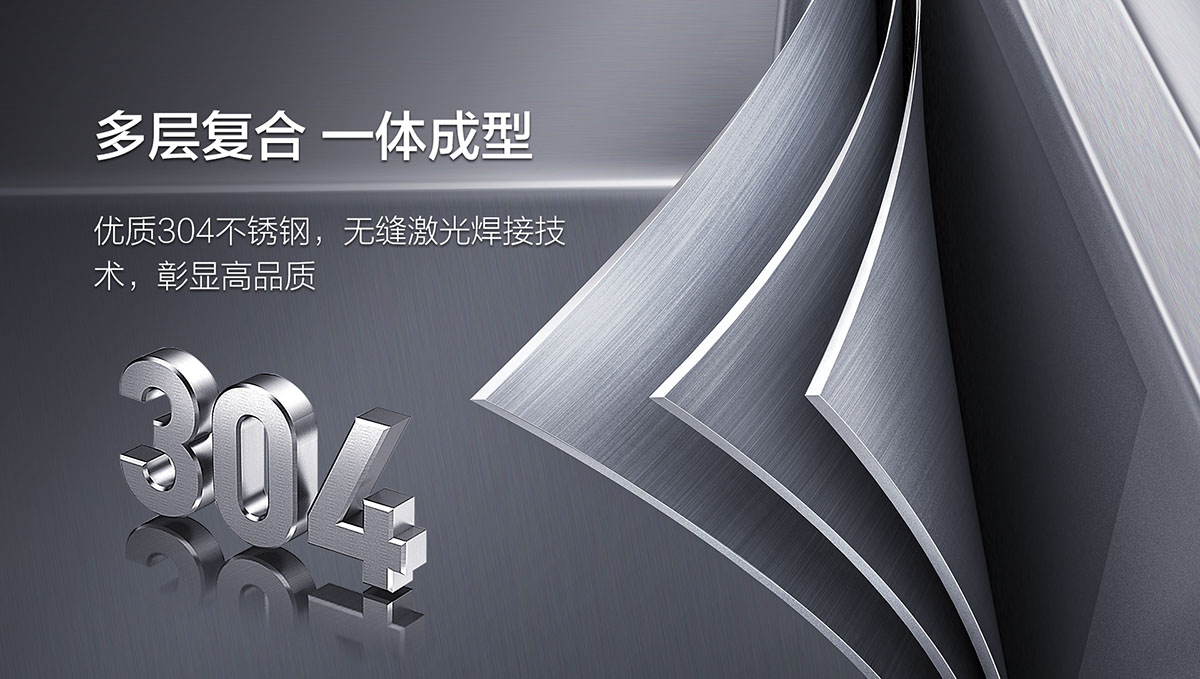 • 優質304不銹鋼,無縫激光焊接,多層復合 一體成型