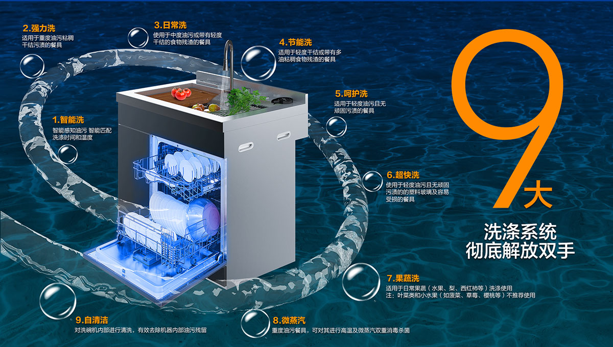 • 大洗滌系統,滿足洗碗、洗果蔬各種需求