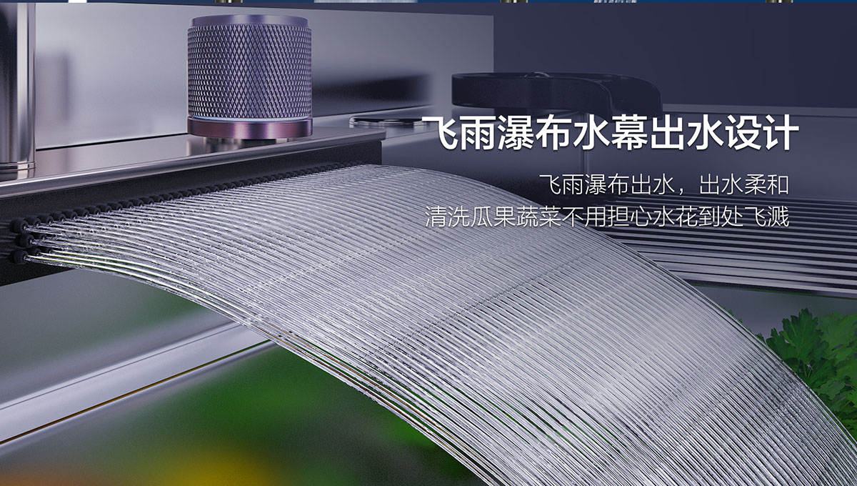 • 飛雨瀑布水幕,快洗蔬菜果皮內部及表皮的泥垢、農藥殘留