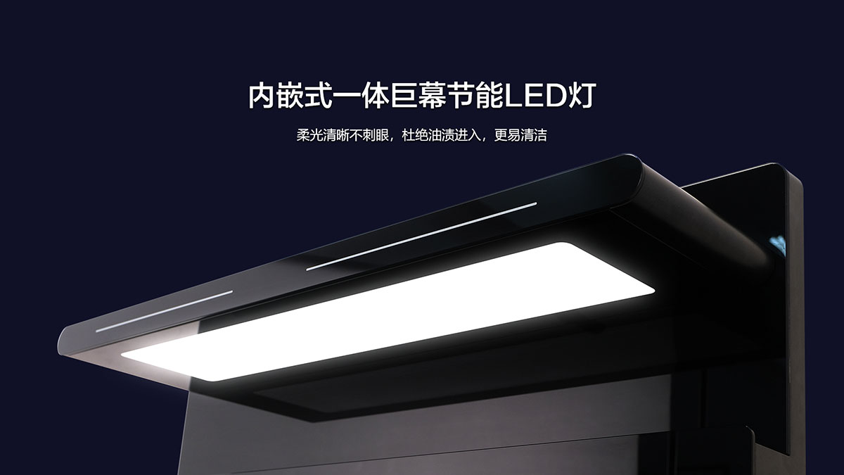 • 內嵌式一體巨幕節能LED燈,杜絕油污進入