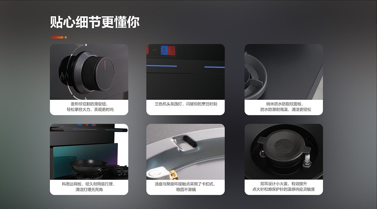 • 環抱式立體聚能環,防風聚熱,更有溢水保護