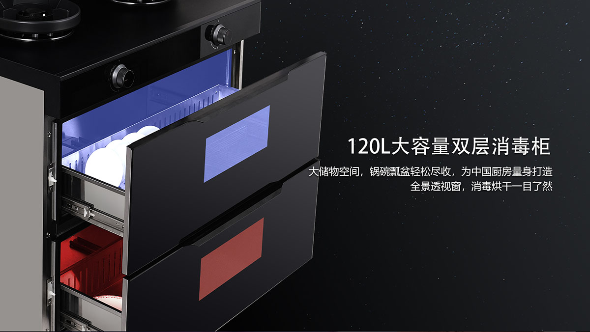 • 大容量雙層消毒柜,為中國廚房量身打造