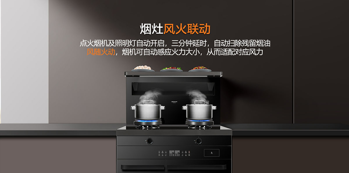 - 21.5m³/min寬域爆吸攏煙,油煙0逃逸