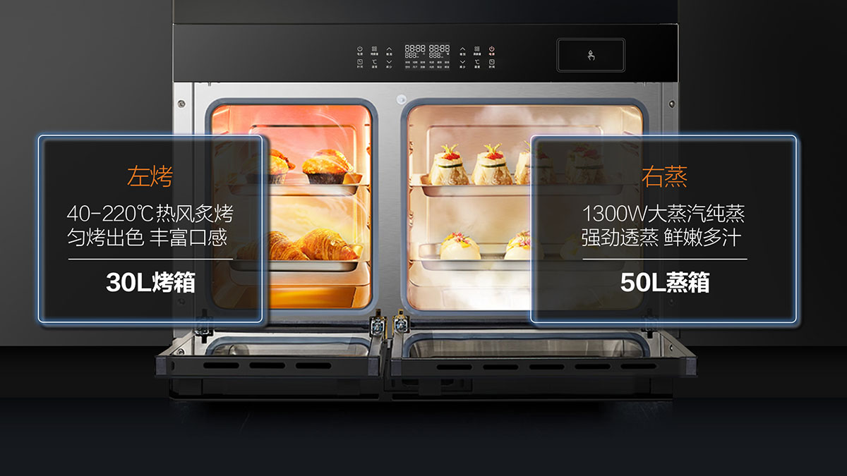 - 蒸烤獨立,雙管齊下,烹飪更高效