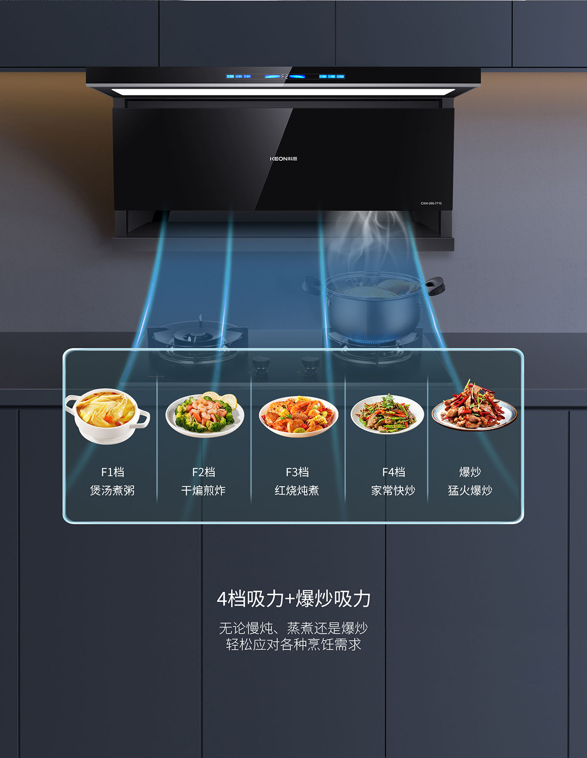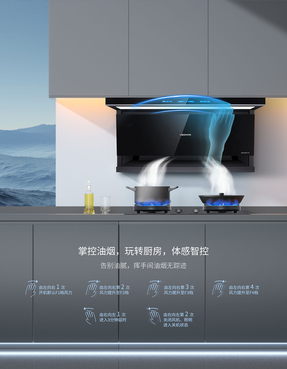 - 體感智控,揮手間油煙無蹤,杜絕油膩
