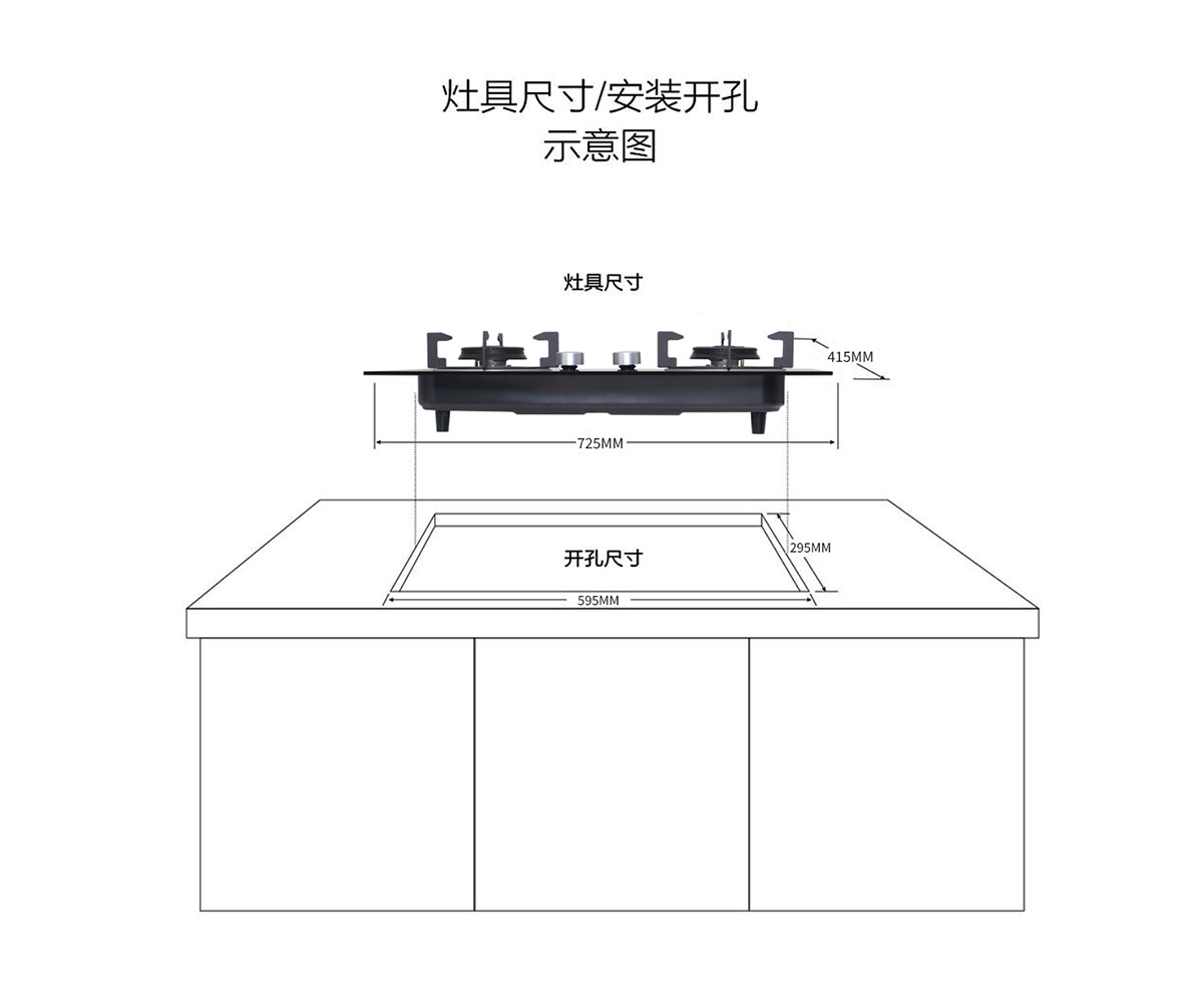 外形尺寸:725x415x132mm開(kāi)孔尺寸:595x295xR30mm